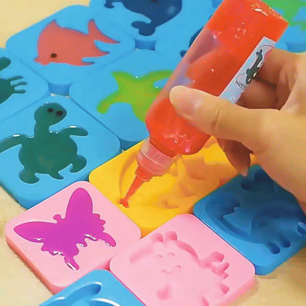 🎨 Bunte Gel-Farben zum Selbergießen – Mit verschiedenen Farben lassen sich eigene Figuren kreativ gestalten.