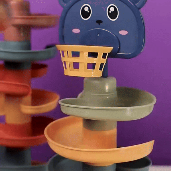 "Mein Sohn hat viel Spaß mit dem Bären Ball Turm! Es hilft ihm, seine Hand-Augen-Koordination zu verbessern, und er liebt es, dem Ball beim Hinunterrollen zuzusehen."