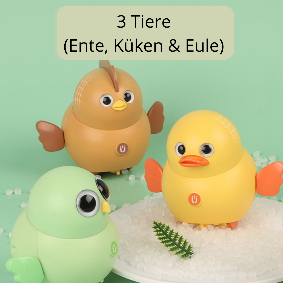 Mit den interaktiven Vögeln können Kinder ihre Feinmotorik und Hand-Auge-Koordination auf eine unterhaltsame Weise entwickeln. Das Spielzeug ist so konzipiert, dass es die Kinder zu wiederholtem Drehen und Greifen anregt, was die motorischen Fähigkeiten auf einfache und natürliche Weise fördert.
