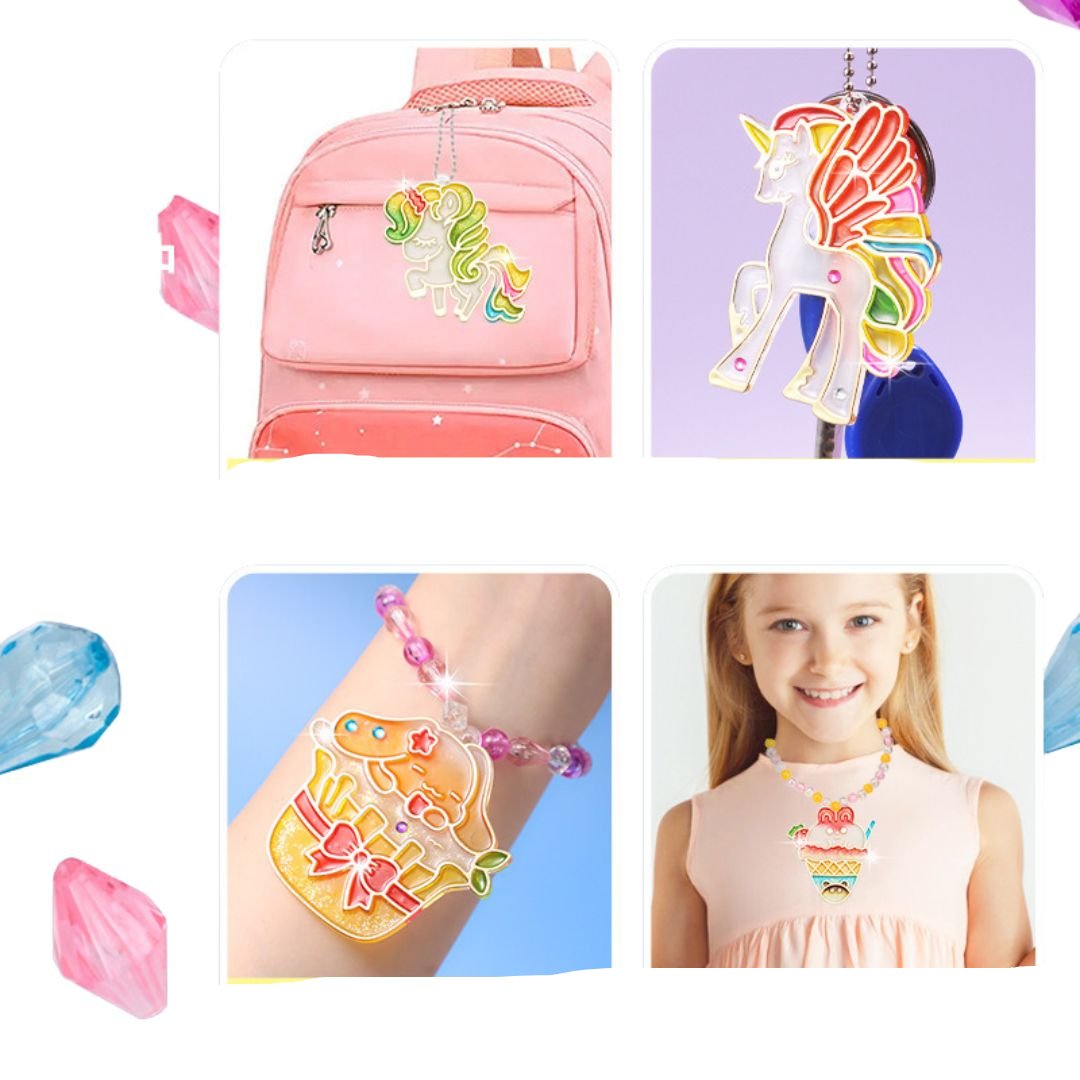 • 🎨 Fantasievolle Designs: Kinder können ihre eigenen, einzigartigen Kunstwerke mit leuchtenden Kristallen gestalten.