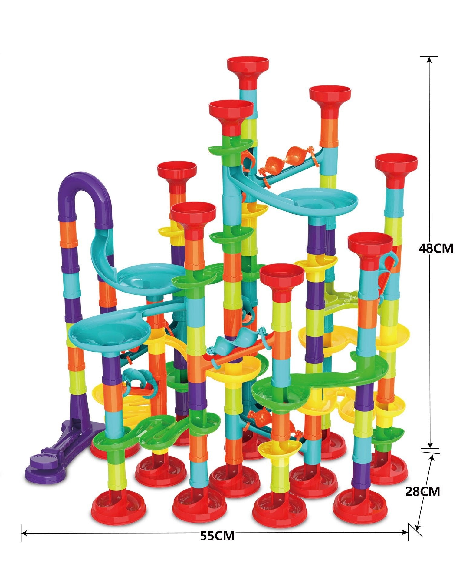 Dieses Set fördert die Kreativität meiner Kinder. Es gibt unzählige Möglichkeiten, die Murmelbahn zu gestalten.