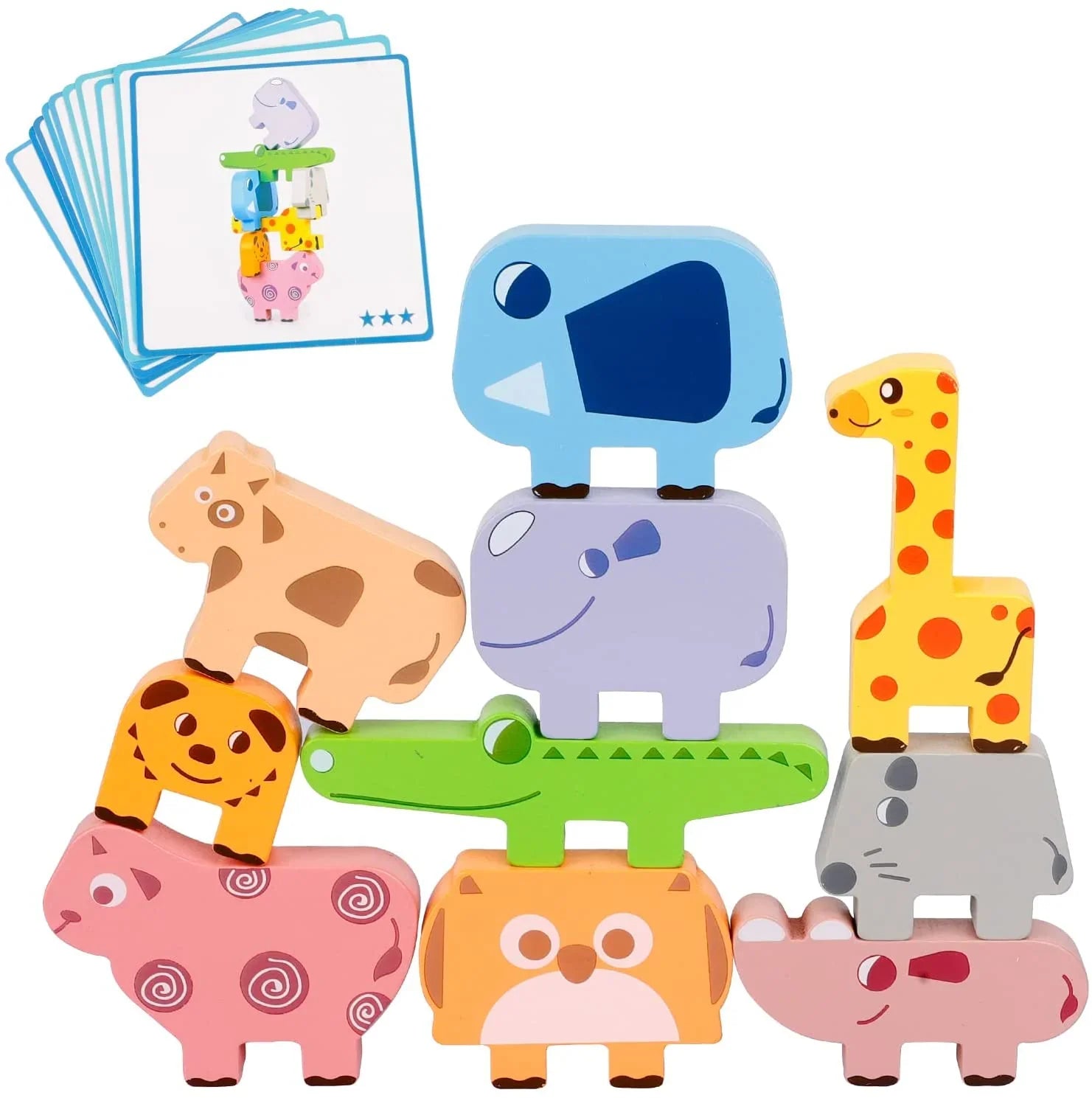 🦁 Bunte Tierfiguren – Vielfältige und farbenfrohe Tiere, die das Stapeln zu einem kreativen Abenteuer machen.