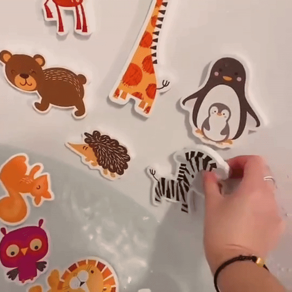 Dieses Badespielzeug macht das Baden zu einem unterhaltsamen Erlebnis, das gleichzeitig zur kognitiven Entwicklung beiträgt. Kinder beschäftigen sich mit den bunten Tierstickern, was ihre Wahrnehmung von Tieren und Farben verbessert.