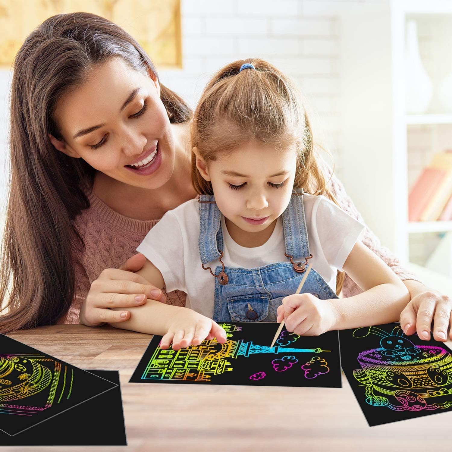 Ob alleine oder gemeinsam mit Freunden und Familie – dieses Kratzset sorgt für stundenlangen kreativen Spaß. Es ist die perfekte Aktivität, um Kinder zu beschäftigen, die ihre künstlerischen Fähigkeiten entdecken möchten, und gleichzeitig eine entspannende Freizeitbeschäftigung für Erwachsene.