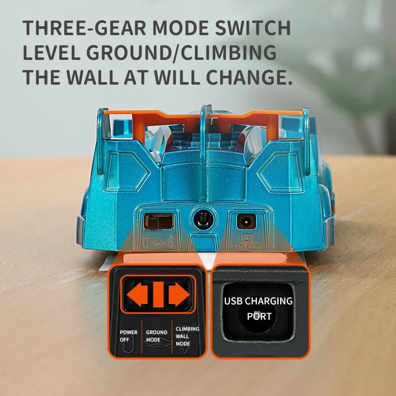 🚀 Fahren an Wänden und Decken: Durch die starke Saugkraft haftet das Auto an vertikalen Flächen und sogar an der Decke.