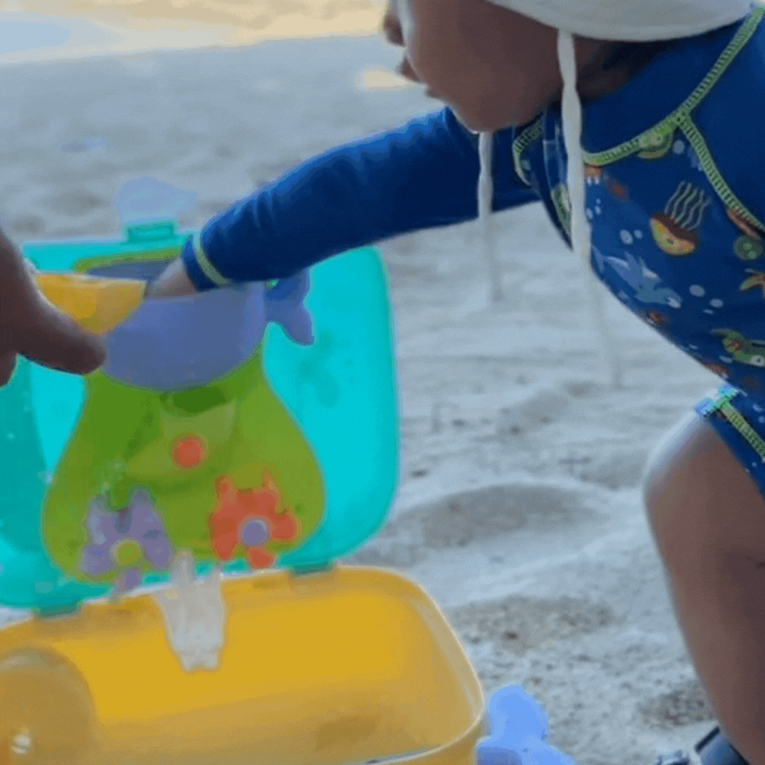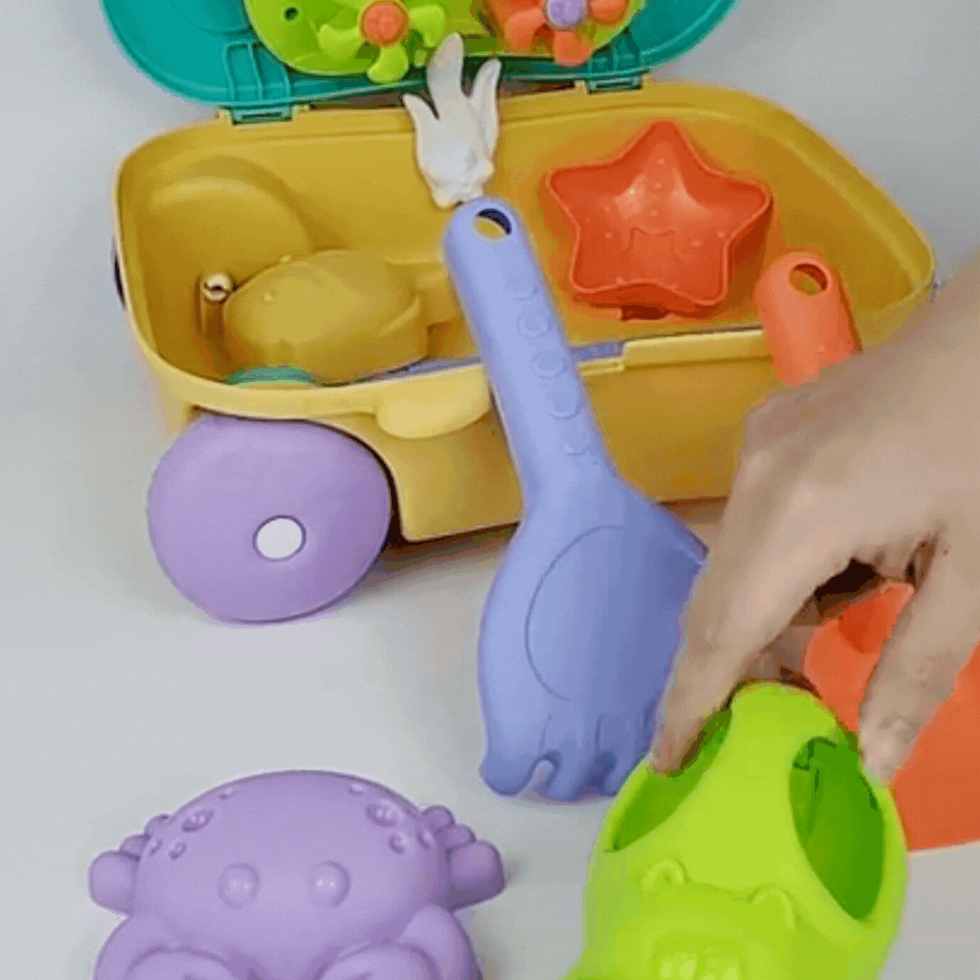 • 🧸 Vielseitige Spielzeuge – Enthält Sandspielzeug wie Eimer, Schaufeln und Förmchen für stundenlangen Spaß am Strand.