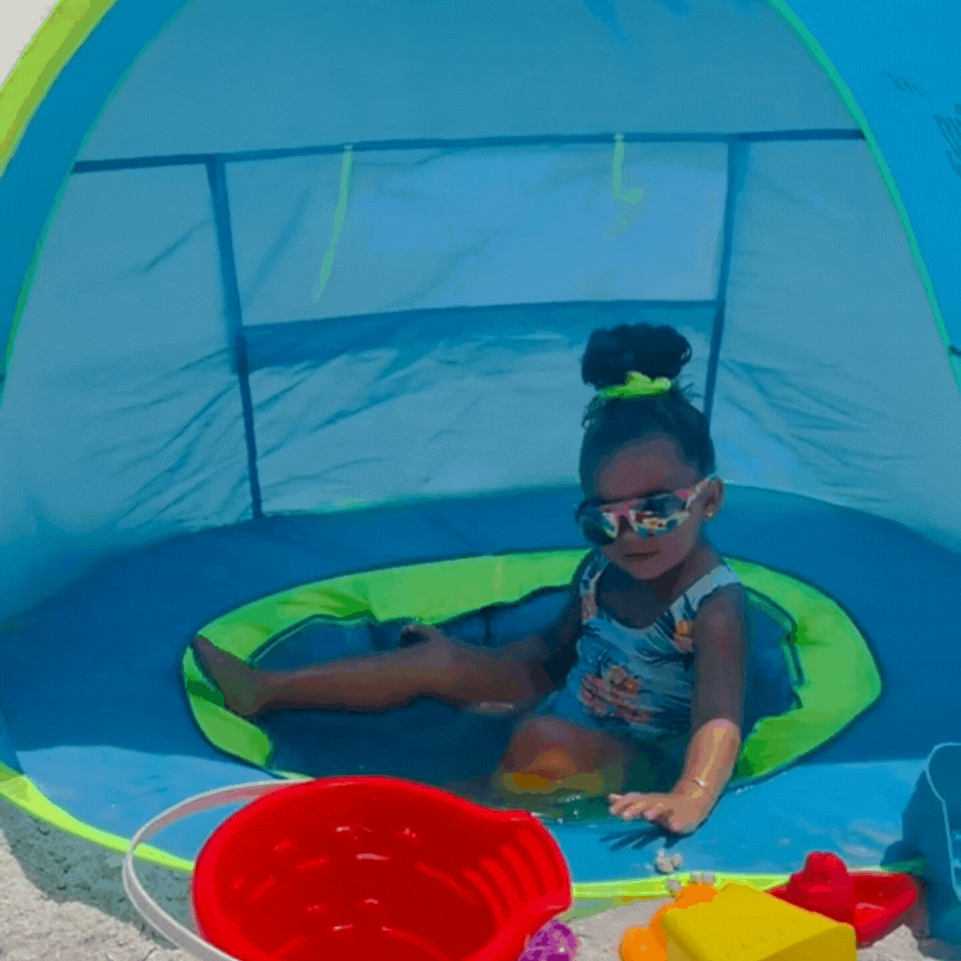 Das Strandzelt ist perfekt für unseren Urlaub. Der integrierte Pool sorgt dafür, dass meine Kinder auch am Strand nicht auf Wasservergnügen verzichten müssen.