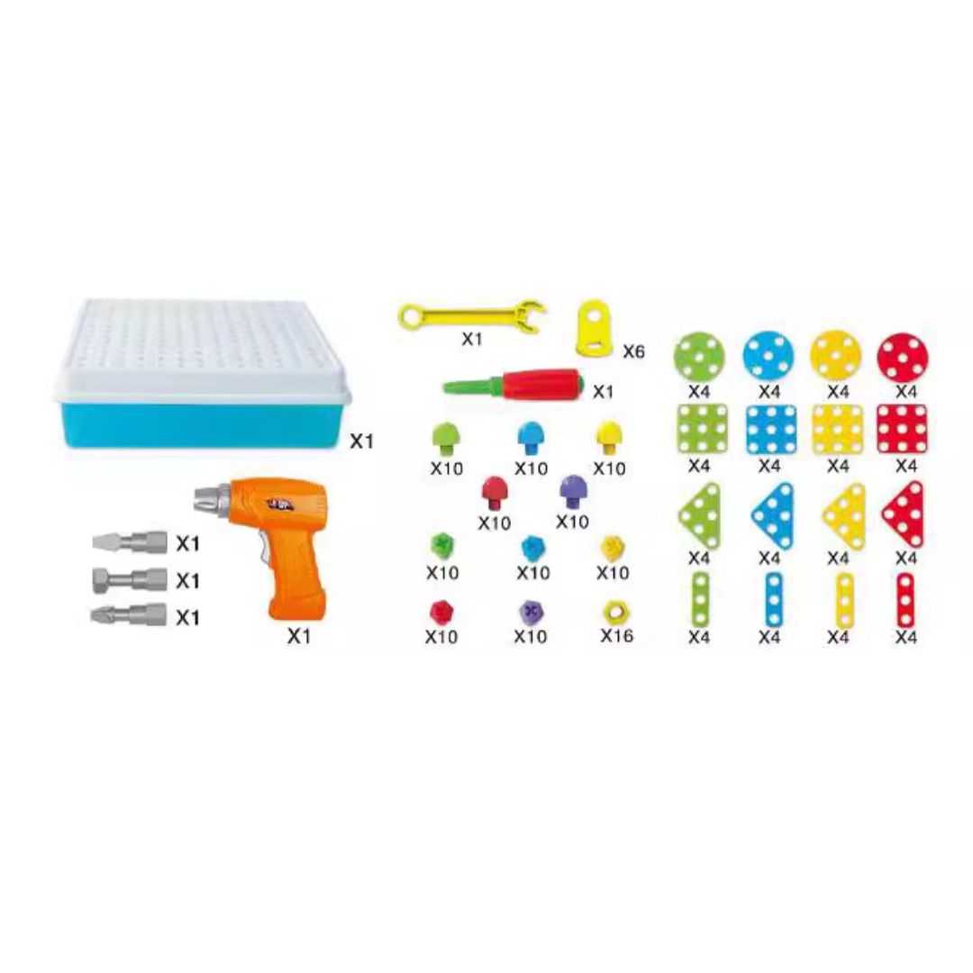 Das Werkzeugkasten-Set bietet nicht nur unzählige Stunden Spaß, sondern ist auch eine großartige Möglichkeit, wichtige Fähigkeiten wie Hand-Auge-Koordination und Feinmotorik zu trainieren. Kinder können ihre eigenen Designs kreieren, was ihre Kreativität und Problemlösungsfähigkeiten stärkt.